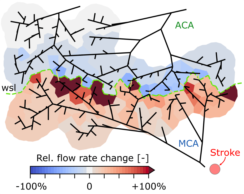 Ischemic strokes, i.e., the occlusion of a major feeding vessel, affect several million people annually worldwide. Often, even after the removal of the blood clot, impairments of the patient remain. Connections between major cortical feeding vessels – so-called collaterals – have been identified to cause smaller infarct volumes. Gradual reperfusion after clot removal is another aspect associated with reduced tissue damage. To ensure a strong connection to on-going in vivo experiments, we develop numerical models able to incorporate both topological and perfusion-related in vivo data. This numerical framework is used to quantify the role of collaterals during stroke, reperfusion, and treatment and provides the opportunity to develop novel therapeutic strategies.